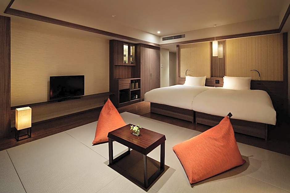 Features Western beds and a tatami (woven-straw) area. 3rd and 4th guests will sleep on futon mattresses. The rooms come with a flat-screen TV and air conditioning. A fridge and an electric kettle are also included. The private bathroom has a bath tub and a hairdryer.